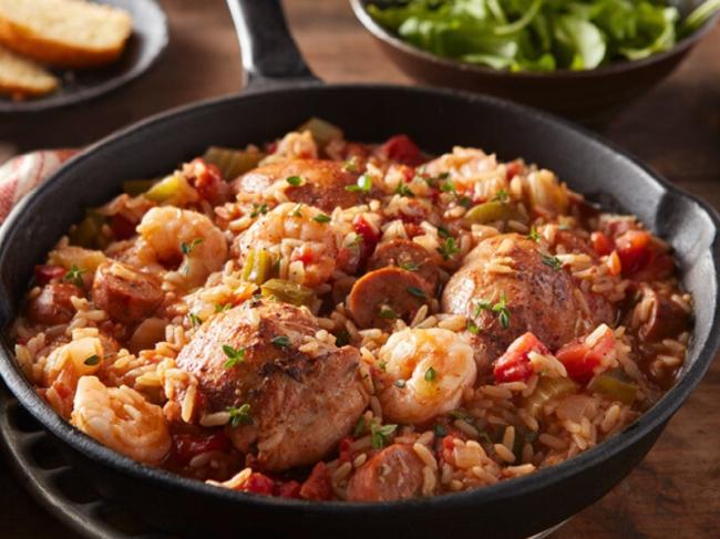 Jambalaya is a classic Southern one-pot meal, with rice, vegetables and plenty of meat and seafood. The Cajun and Creole flavors are a blend of African, Spanish and French influences, producing a dish with something different in every bite. In New Orleans, you might find Jambalaya made with several kinds of meat, game and seafood, but this version is streamlined by featuring chicken, andouille sausage and shrimp.