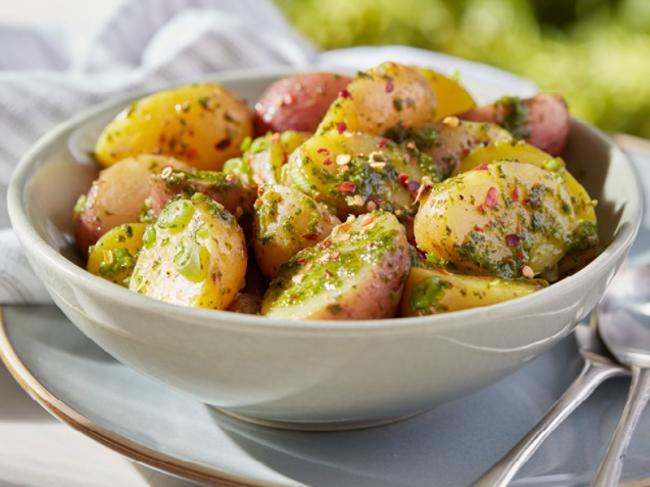 Ramp up your potato salad with a zingy, herby chimichurri sauce instead of a mayo-based dressing. Chimichurri is an Argentinian sauce, usually drizzled on grilled steaks, but it’s so bright and flavorful that it makes a perfect pairing with potatoes and other vegetables, too.