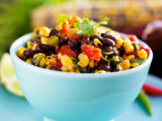Combine the canned beans, mango, red bell pepper, jalapeno, cilantro, avocado and garlic with the marinated onions and cooled corn. Toss gently and add salt to taste.